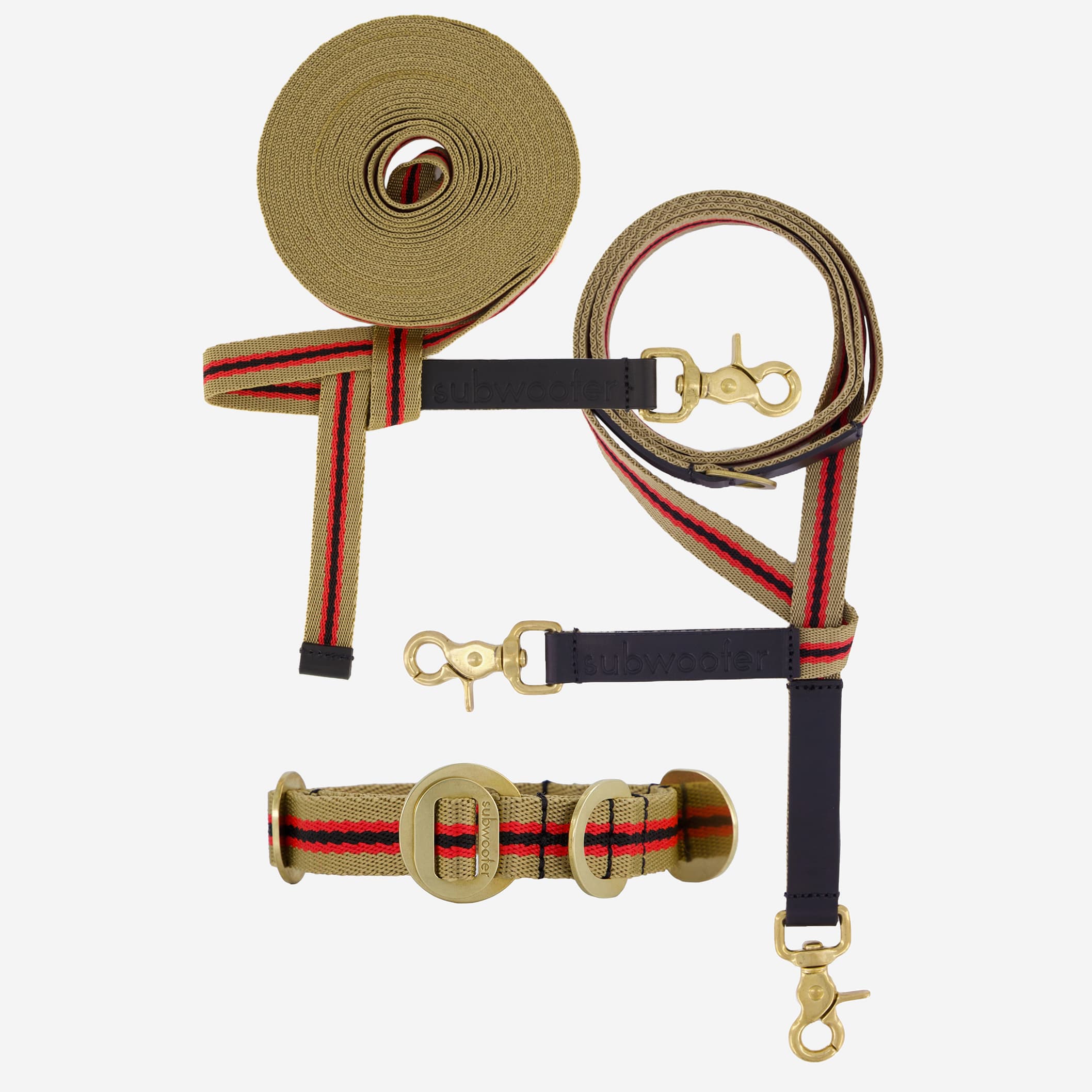 Built for the little adventurers — the Piha dog collar, Takapuna lead, and matching Muriwai long line set balance comfort, control, and quiet confidence. Made from marine grade webbing and finished with solid brass hardware, this trio is light in feel but strong enough to handle daily exploration for years to come.