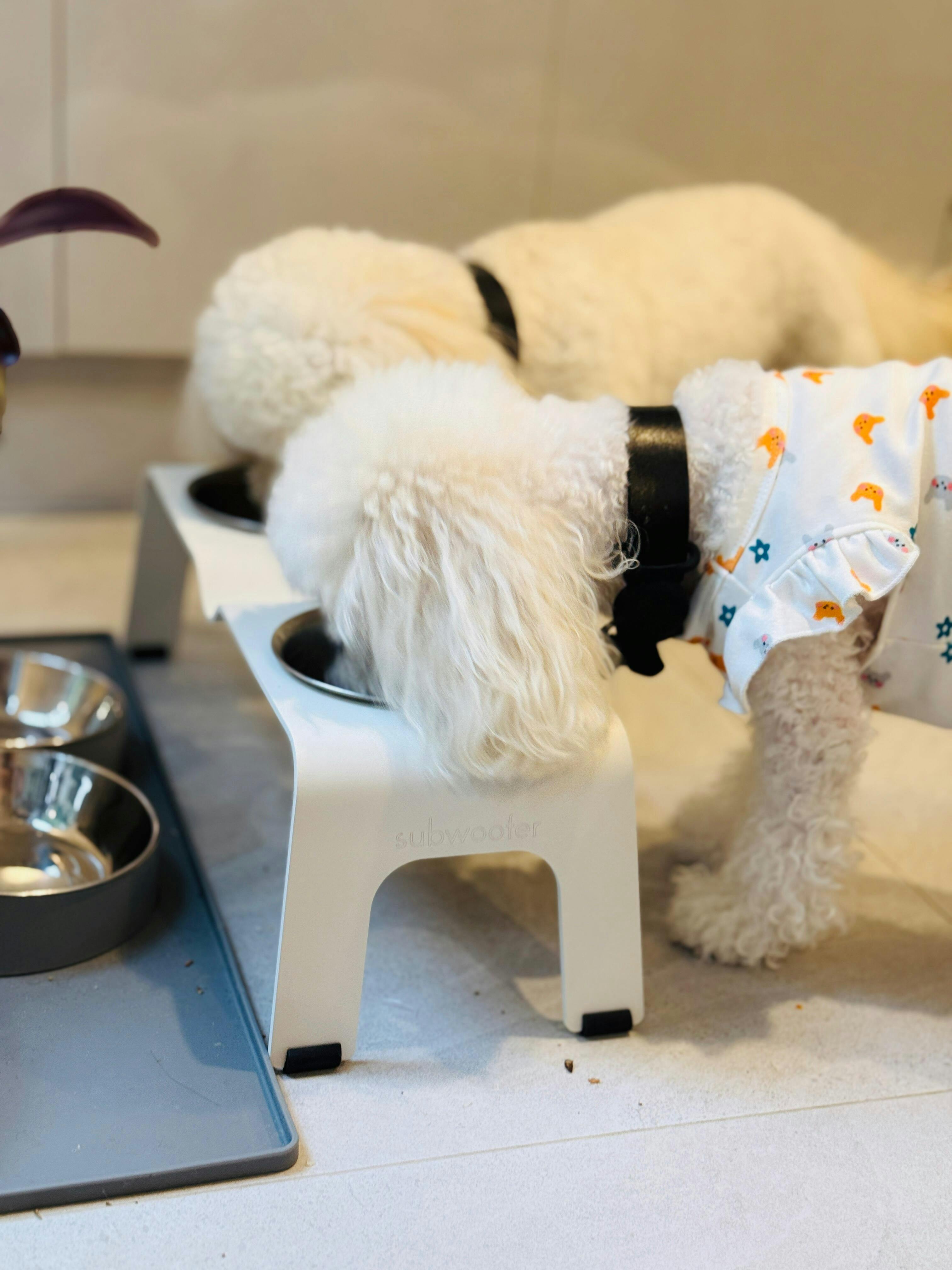 Because no dog wants soggy ears. The carefully considered dip between bowls gives space for food and water to stay separate, and for long ears to stay dry. It also helps keep your feeding area cleaner; a small detail that makes a big difference not just for you, but for spaniels, oodles, and other floppy-eared companions.