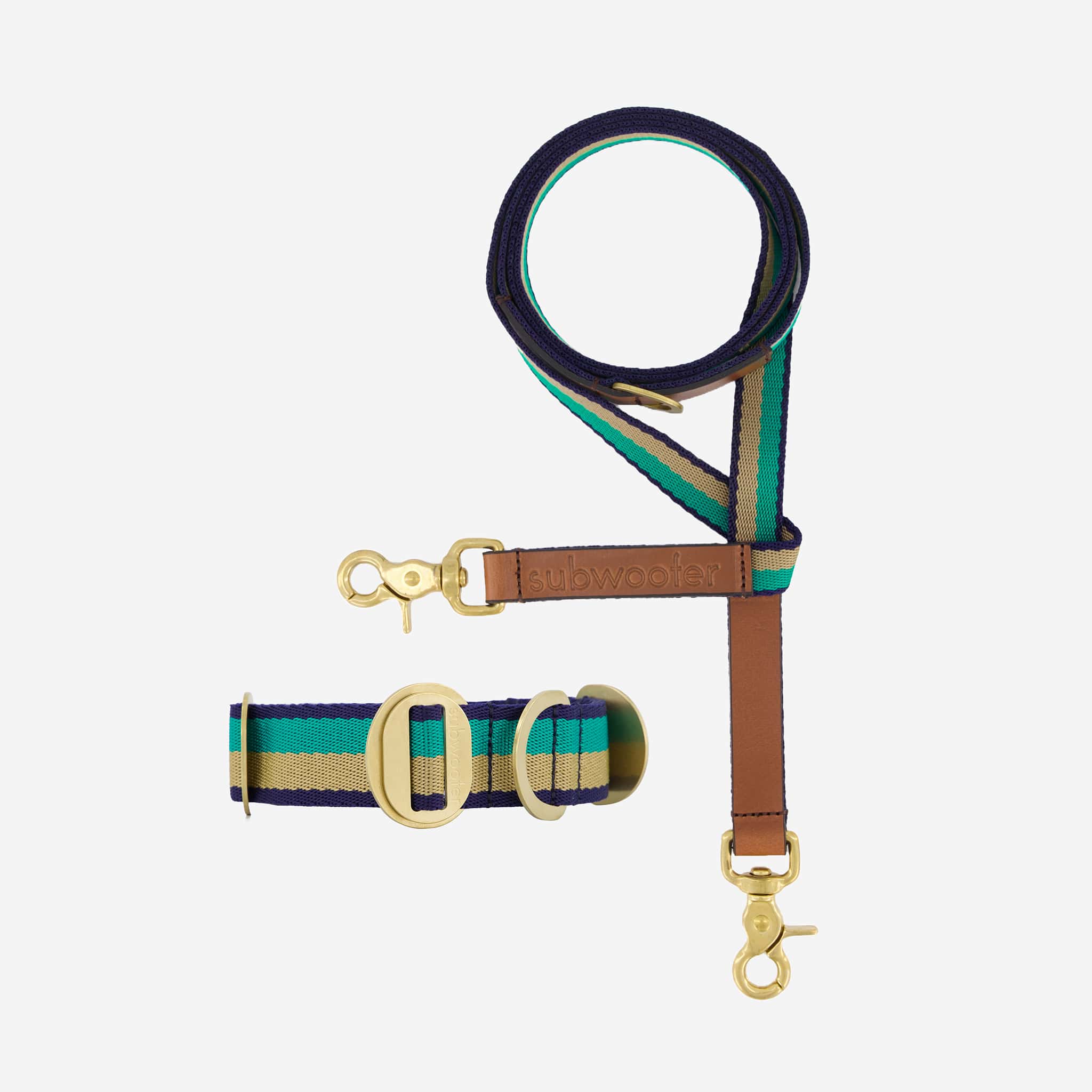 The Large Piha collar and matching Takapuna lead are built for the heavyweights: thicker, stronger, and made with marine grade webbing and hand-finished solid brass hardware and guaranteed to look sharp for at least five years.