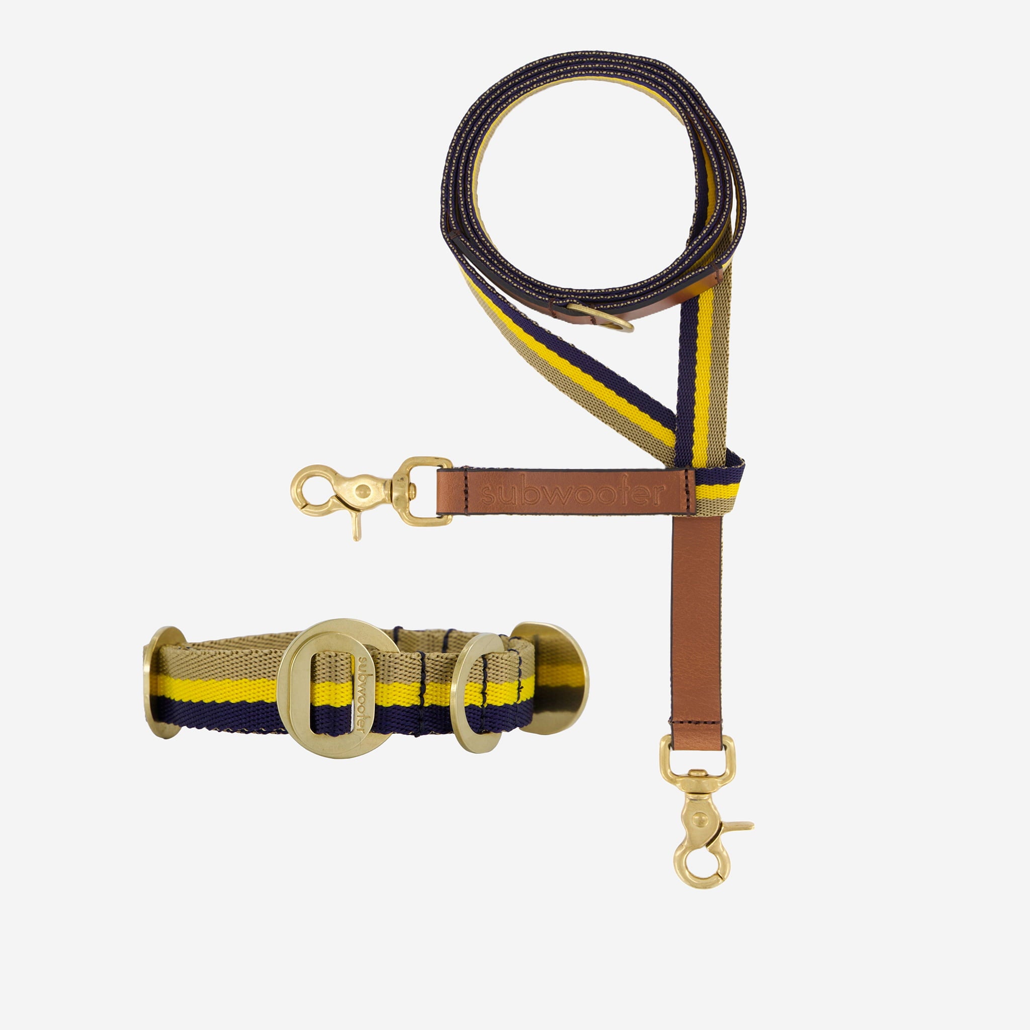 Made for little legends, the Small Piha Collar and Lead Set combines marine grade webbing in our signature stripes with solid brass hardware polished for 10 hours, then sealed in a tapware grade finish for durability, a soft patina, and to help resist fur marking.