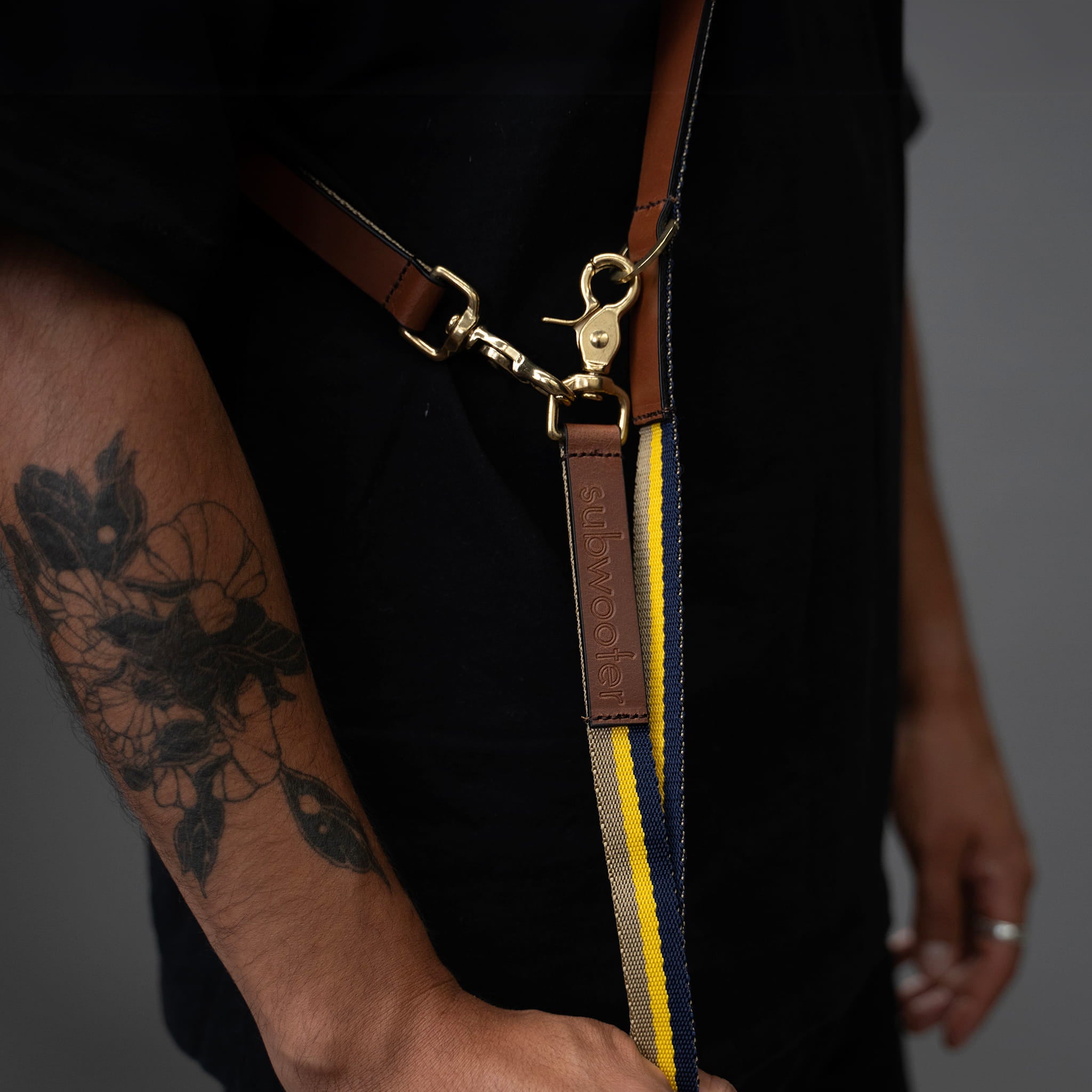 For little dogs with big dog energy, we developed our own robust webbing in signature stripes, designed to safely tether as you pop into the shops, and the perfect match for our Subwoofer dog collars.